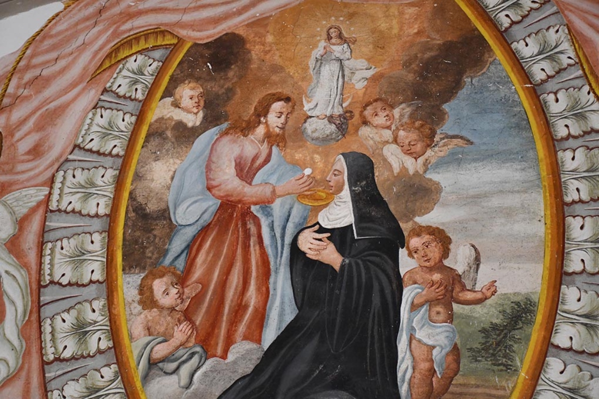 Anche da bambina Chiara aveva una grande passione per la sofferenza di Cristo e una saggezza spirituale insolita, che si diceva fosse un dono del cielo. Nata nel 1268 da una famiglia benestante, Chiara era la terza figlia e, a sei anni, scelse la vita monastica, seguendo l’esempio di una sorella maggiore, Giovanna, che aveva fondato una piccola comunità di laiche in un eremo isolato.
