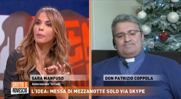 Lo scontro per la messa di Natale in diretta tv a Dritto e Rovescio fra Sara Manfuso e don Patrizio Coppola