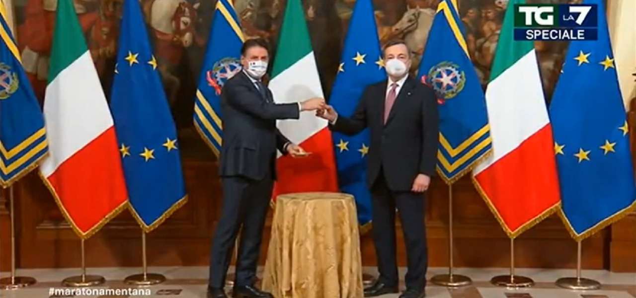 VIDEO, LO SCAMBIO DELLA CAMPANELLA TRA CONTE E DRAGHI