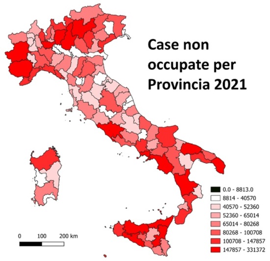 Le percentuali più elevate si registrano nelle Isole (34,9%) e nel Sud Italia (32%). A livello regionale, la Valle d’Aosta presenta la quota più alta con il 56% di abitazioni non occupate, seguita da Molise (44,6%) e Calabria (42,2%). A livello provinciale, Sondrio ha la percentuale più alta di abitazioni non occupate (56,1%), mentre Prato registra la percentuale più bassa (7,8%).