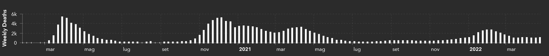 Però, nella stragrande maggioranza dei casi, conviene vivere normalmente. Tra l’altro, tra poco farà caldo e il virus ci lascerà in pace. Le due curve dei contagi e delle morti nelle due figure prodotte sono quasi a zero durante le estati del 2020 e del 2021: verosimilmente, sarà così anche nell’estate che sta per arrivare.