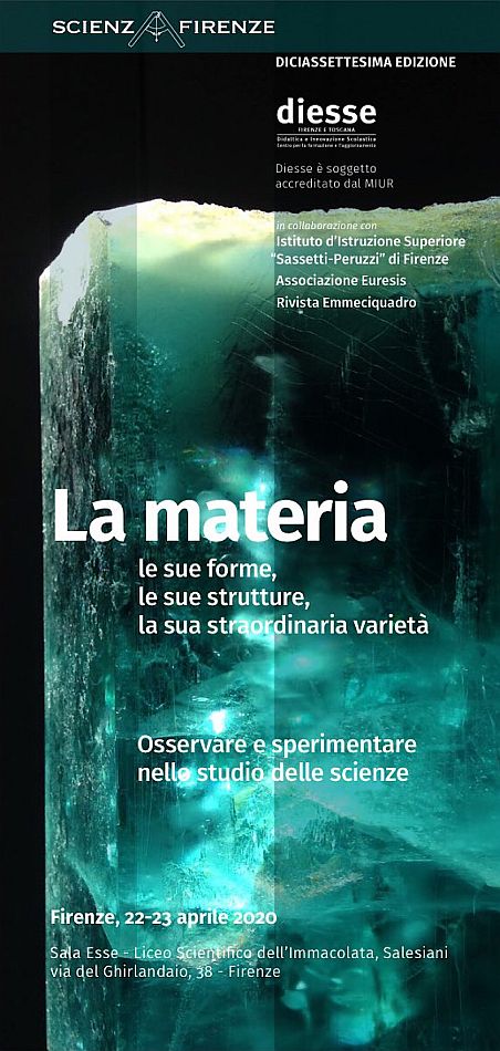 È stato un anno scolastico fuori dall’ordinario e ha richiesto uno sforzo straordinario da parte di organizzatori, studenti, docenti e relatori. Di fronte all’imperversare della pandemia abbiamo assistito al riunirsi di una comunità, che possiamo a tutti gli effetti chiamare «comunità scientifica», fatta di alunni delle scuole superiori e dai loro docenti, che hanno voluto con tutto il cuore esserci anche in questo momento difficile. Lo studio di un fenomeno naturale è mosso dalla curiosità di conoscere, dall’esperienza del quotidiano o dalla necessità di indagare terreni inesplorati. L’indagine scientifica proposta dalla XVII edizione di ScienzAfirenze1 era di indagare la materia, mettendone in risalto forme e strutture; questo infatti il titolo: La materia: le sue forme, le sue strutture, la sua straordinaria varietà. Osservare e sperimentare nello studio delle scienze.