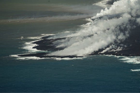 Agosto 2019: la lava del Kilauhea si getta nel mare creando grandi nubi di vapore (foto di Maximilian Speciani)