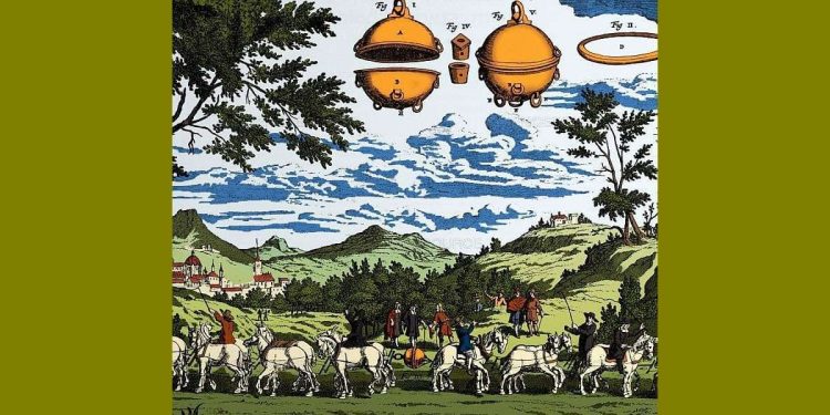 La scienza e la tecnica, che facevano parte, come si è accennato della sua formazione, non gli furono utili solamente nel suo lavoro di amministratore, ma fecero anche parte dei suoi interessi più profondi. Nel dibattito scientifico dei suoi tempi, sul quale egli si manteneva aggiornato leggendo i testi che sempre più circolavano in Europa, lo colpiva in particolare la questione se fosse possibile, e quali fossero le conseguenze, della creazione del vuoto. Ricordiamo che risaliva al 1644 il celebre esperimento della colonna di mercurio di Evangelista Torricelli con il quale l’allievo prediletto di Galileo aveva dimostrato che “l’aria ha un peso” e che nella parte alta del tubo di vetro che conteneva il mercurio si creava il vuoto. Quattro anni dopo Blaise Pascal aveva dimostrato che la pressione atmosferica decresce con l’altezza. Anche von Guericke ripeté questi esperimenti e in seguito riuscì anche ad effettuare delle rudimentali previsioni del tempo collegando una brusca diminuzione della pressione atmosferica all’arrivo di una forte perturbazioni. In perfetta sintonia con il nuovo spirito scientifico del suo tempo, che esaltava l’importanza delle verifiche sperimentali, a partire dal 1650 von Gueriche iniziò una serie di sperimentazioni che gli permisero di perfezionare le sue idee e di arrivare in seguito a quella che rimane la sua dimostrazione più nota: gli “emisferi di Magdeburgo”.