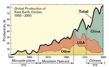 Per quel che riguarda gli Stati Uniti va sottolineato che il tipo di minerale che si trova nel giacimento di Mountain Pass è analogo a quello sfruttato in Cina, per cui le motivazioni della decrescita sembrerebbero dettate da problemi strettamente tecnici di difficoltà di lavorazione. In realtà non ci si trova davanti ad un’effettiva penuria di minerale, né a un monopolio delle riserve mondiali da parte della Cina.