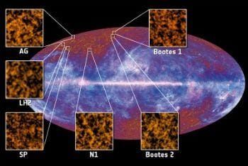 L’analisi di questi dati preliminari da parte del team di Planck ha portato importanti contributi nel campo dell’astrofisica galattica ed extragalattica. Ad esempio, grazie a Planck sono stati scoperti 20 nuovi ammassi di galassie, le strutture più grandi dell’universo, rilevando l’effetto Sunyaev-Zel’dovich (SZ) mediante il quale un ammasso di galassie lascia una sorta di “impronta” nel fondo cosmico osservabile grazie alla grande copertura in frequenza di Planck (Figura 1).
