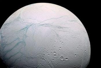 Spostiamoci dunque su Encelado, una piccola luna di Saturno che si trova a poco più di 180.000 km dalla superficie del gigante gassoso, proprio all’interno di uno dei famosi anelli, l’anello E, quello più esterno, esteso e rarefatto. Encelado è interamente ricoperto da uno strato di alcune decine di km di ghiaccio relativamente giovane e per questo è il corpo a più alta albedo (la capacità della superficie di riflettere la luce) di tutto il sistema solare, caratteristica che contribuisce a mantenerlo freddo. La sua crosta ghiacciata è sede di fenomeni di criovulcanismo, cioè di eruzione di fluidi freddi.