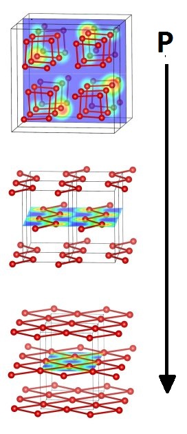 L’ossigeno, a pressione e temperatura ambiente, è un gas formato da molecole biatomiche (O2) e tale resta anche allo stato liquido. Allo stato solido sono possibili numerose fasi. La stessa cosa è nota per idrogeno, azoto, ossido di carbonio e anidride carbonica. Come si può vedere dal diagramma in Figura 1, la regione a pressioni superiori i 100 GPa non è mai stata esplorata sperimentalmente, ma questo non vieta che si possano eseguire calcoli teorici per prevedere le proprietà a pressioni ancora maggiori.