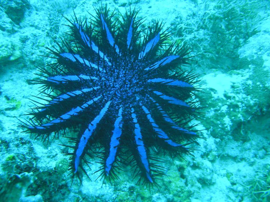 Un altro fenomeno che ha lasciato devastanti strascichi sulle scogliere è dovuto ad un imprevedibile predatore dei coralli: la stella di mare corona di spine (Acanthasrer planci). A differenza dei loro parenti ricci di mare, che sono degli innocui brucatori del feltro algale, le stelle sono dei carnivori estremamente efficienti che sfruttano le loro prede con un meccanismo decisamente inusuale. Il loro stomaco sacciforme viene estroflesso attraverso la bocca e applicato alla preda che risulta così inglobata già parzialmente digerita. In questo modo le stelle possono predare una gran quantità di organismi, dai molluschi bivalvi alle spugne alle carcasse di pesci. Acanthaster è però specializzato nella predazione dei coralli: questa grande stella di oltre 50 cm di diametro, irta di spine ricoperte da un muco velenoso, si muove sulle scogliere applicando su di esse lo stomaco estroflesso.