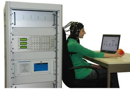 L’altra macchina sfrutta lo stesso principio, lo stesso tipo di illuminazione, ma l’obbiettivo è di monitorare le variazioni di emoglobina nella corteccia cerebrale. Anche qui la misura è del tutto non invasiva e si ottiene appoggiando delle fibre ottiche sulla testa del paziente mediante delle cuffie. Si misurano le variazioni di emoglobina conseguenti all’attivazione dei neuroni; è il fenomeno detto dell’accoppiamento neuro-vascolare; è lo stesso fenomeno fisiologico che sta alla base della più nota tecnica della Risonanza Magnetica Funzionale: questa utilizza le proprietà magnetiche dell’emoglobina (quella deossigenata che è paramagnetica), la nostra tecnica invece utilizza i differenti spettri di assorbimento dell’emoglobina ossigenata e deossigenata. Sono due modi diversi di analizzare lo stesso fenomeno. Entrambe le strumentazioni sono state sviluppate dal nostro Dipartimento e sono già state utilizzate per studi clinici in alcuni Istituti milanesi.