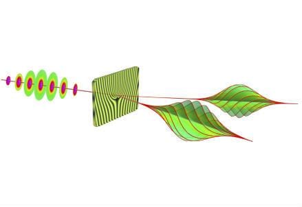 Sfruttando gli elettroni, sono stati prodotti di recente fasci di elettroni con momento angolare orbitale; ma finora è stato difficile ottenere con gli elettroni alti valori del momento angolare. Recentemente il gruppo di Grillo, con Gian Carlo Gazzadi e Stefano Frabboni, in collaborazione con Ebrahim Karimi e Robert Boyd dell’Università di Ottawa (Canada), hanno creato intensi fasci di elettroni “elicoidali” con elevato momento angolare. Per produrli, come spiegano nell’articolo su Physical Review Letters, hanno usato complicati reticoli di diffrazione: «A differenza dei reticoli di diffrazione standard abbiamo usato reticoli che presentano fessure leggermente spostate nel piano tra una regione e la vicina; questi piccoli spostamenti influenzano la sincronizzazione della luce uscente dalle diverse regioni. Ogni regione isolata produrrebbe fronti d’onda piani, ma la loro combinazione dà luogo a un fascio con momento angolare orbitale. Per ottenere però un alto momento angolare orbitale senza ridurre l’intensità del fascio, abbiamo poi costruito un reticolo ancora più elaborato, in cui le sezioni trasversali delle fenditure hanno un profilo sinusoidale».