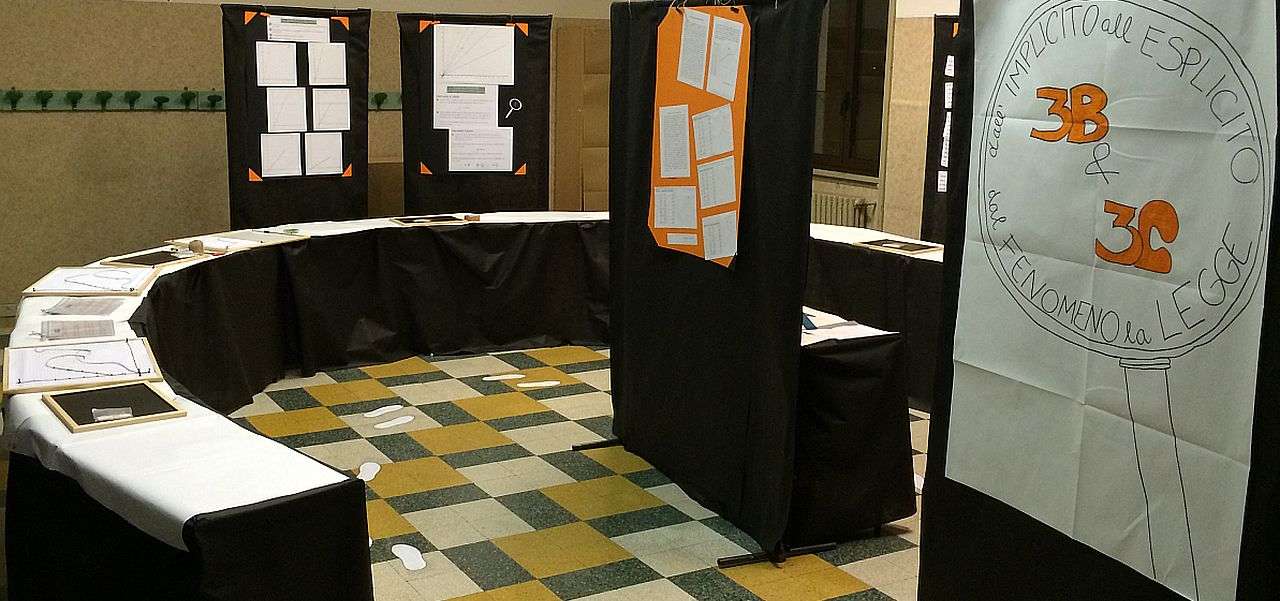 Per un Open Day della scuola, insieme alla collega Anna Maria Giuliano che insegnava Scienze, abbiamo realizzato una mostra che descriveva un percorso di introduzione all’algebra, svolto in una classe terza. Il percorso era scandito in tre sezioni: