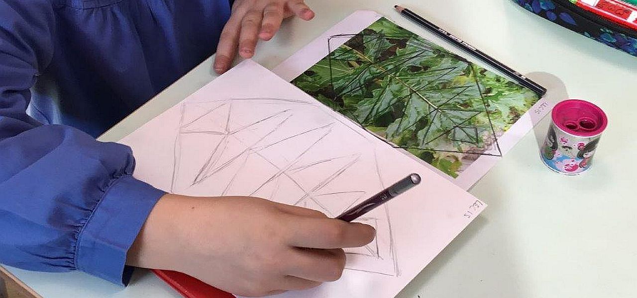 Proponiamo di provare anche noi a disegnare una foglia di acanto, anche se siamo consapevoli della difficoltà di riprodurre una forma così complessa e frastagliata. Generalmente i bambini cominciano a disegnare un particolare per arrivare alla figura complessiva, della quale non sono capaci di gestire la dimensione generale, in rapporto al foglio utilizzato, o la relazione fra le parti. Chiediamo loro di procedere diversamente, cioè osservandone e tracciandone la struttura geometrica: cerchiamo di individuare le linee e le forme della foglia di acanto su immagini fotocopiate, le ricalchiamo per tracciarne la struttura geometrica, per poi cominciare a disegnare la foglia a partire dal disegno di questa struttura. Ognuno, con capacità e difficoltà proprie, riesce a disegnare la sua foglia.