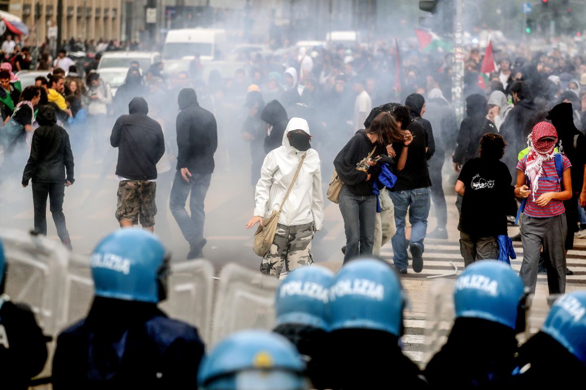 Gli scontri tra manifestanti e forze dell'ordine al corteo per la Palestina a Milano, 22 settembre 2025 (Ansa)