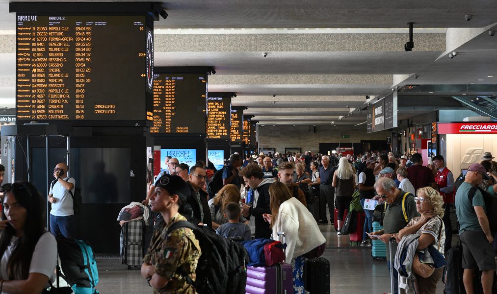 Disagi nei trasporti a causa dello sciopero. Roma, Stazione Termini, 22 settembre 2025 (Ansa)