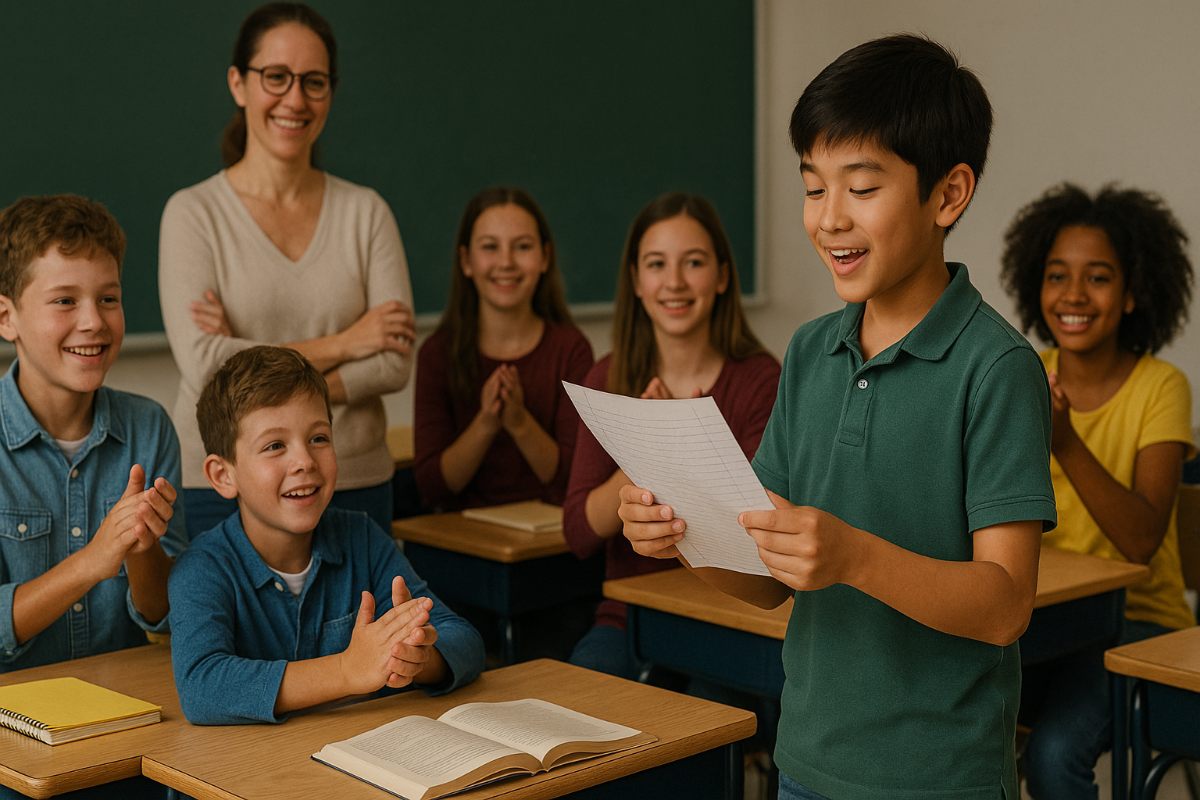 L’altro grande supporto lo forniscono i compagni: Luca è bravo con gli aggettivi, nella poesia che ha letto ai compagni ha usato l’aggettivo “perlaceo”, e l’insegnante l’ha lodato; ecco perché nella sessione di scrittura successiva la sua compagna Camilla, pur brava scrittrice, ha chiesto proprio a Luca una consulenza per gli aggettivi del suo testo! Potete immaginare la soddisfazione e la felicità di Luca che si è sentito valorizzato, che ha capito di avere un talento.