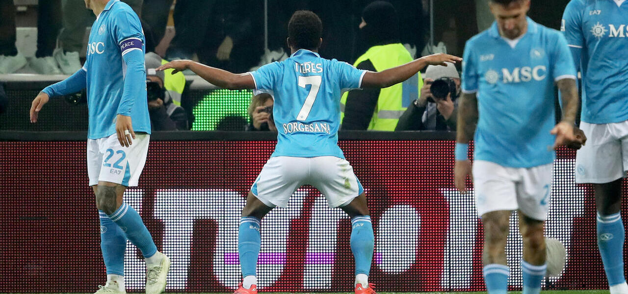 L'esultanza di David Neres per un gol con il Napoli (Foto ANSA)
