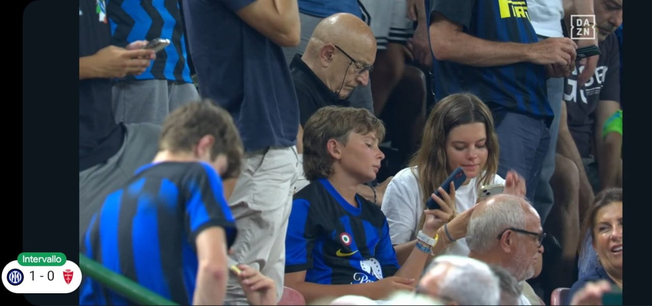 Un momento colto dalle telecamere di DAZN nell'intervallo di Inter-Monza