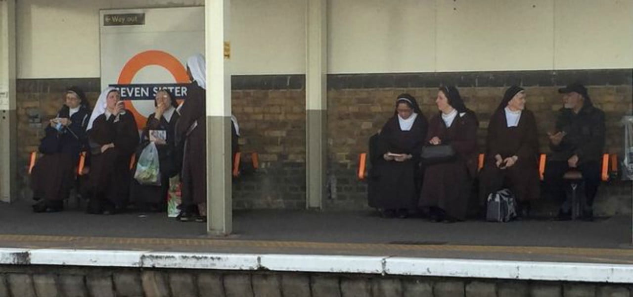 Una foto di sette suore sedute alla stazione della metropolitana di Seven Sisters sta facendo il giro del web