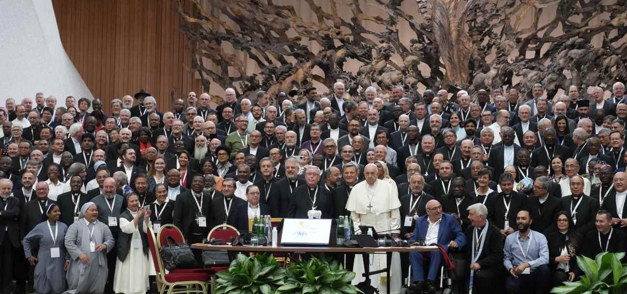Papa Francesco con i partecipanti al Sinodo dei Vescovi (LaPresse, 2023)