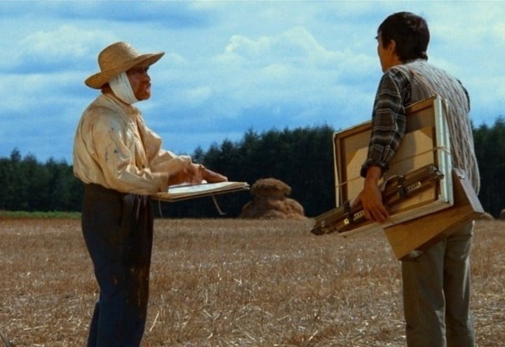 L’uomo cammina in un paesaggio di campagna dai bellissimi colori finché non trova il pittore in un campo di fieno tagliato e di covoni mentre in piedi e di spalle sta disegnando degli schizzi. Ha un cappellaccio grande di paglia, un fazzolettone dalla testa al mento che gli copre le orecchie, quando si gira scopriamo che Vincent van Gogh è interpretato da Martin Scorsese. Gli dice che la bellezza della natura lo trascende fino a mettergli davanti il quadro finito e poi… il vuoto assoluto. Guarda, osserva, disegna e afferma: Io lavoro da schiavo e mi guido come una locomotiva. Il sole mi costringe a dipingere, non posso perdere tempo a parlare con lei.