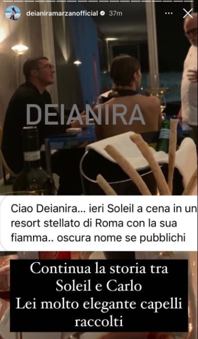 Carlo è l’ormai famoso fidanzato ‘misterioso’ di Soleil Sorge che continua a voler rimanere lontano dai riflettori, tanto che durante i sei mesi al GF Vip dell’influencer non si è mai mostrato in alcun modo. La foto li vede insieme ad una cena elegante e romantica e appaiono affiatati, segno che la loro storia d’amore continua a gonfie vele.