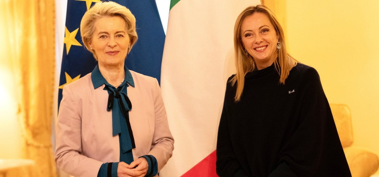 Premier Giorgia Meloni con la Presidente Ursula Von der Leyen (LaPresse, 2023)