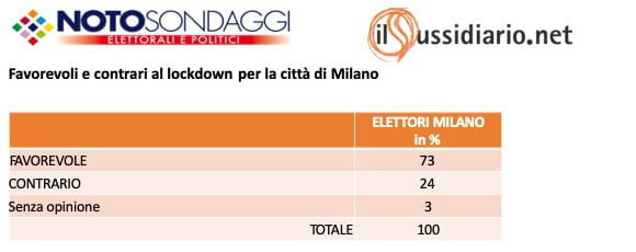 Come è già accaduto per Napoli, il sondaggio rivela l’esistenza di una larghissima maggioranza di favorevoli al lockdown (il 73%, i napoletani lo sono all’80%).