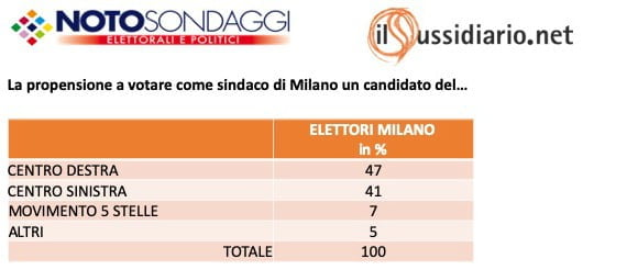 Sondaggio Noto per <em>Il Sussidiario</em>: il giudizio dei milanesi su Sala e sui possibili candidati a sindaco. Cdx avanti sul csx, ma la partita è molto aperta