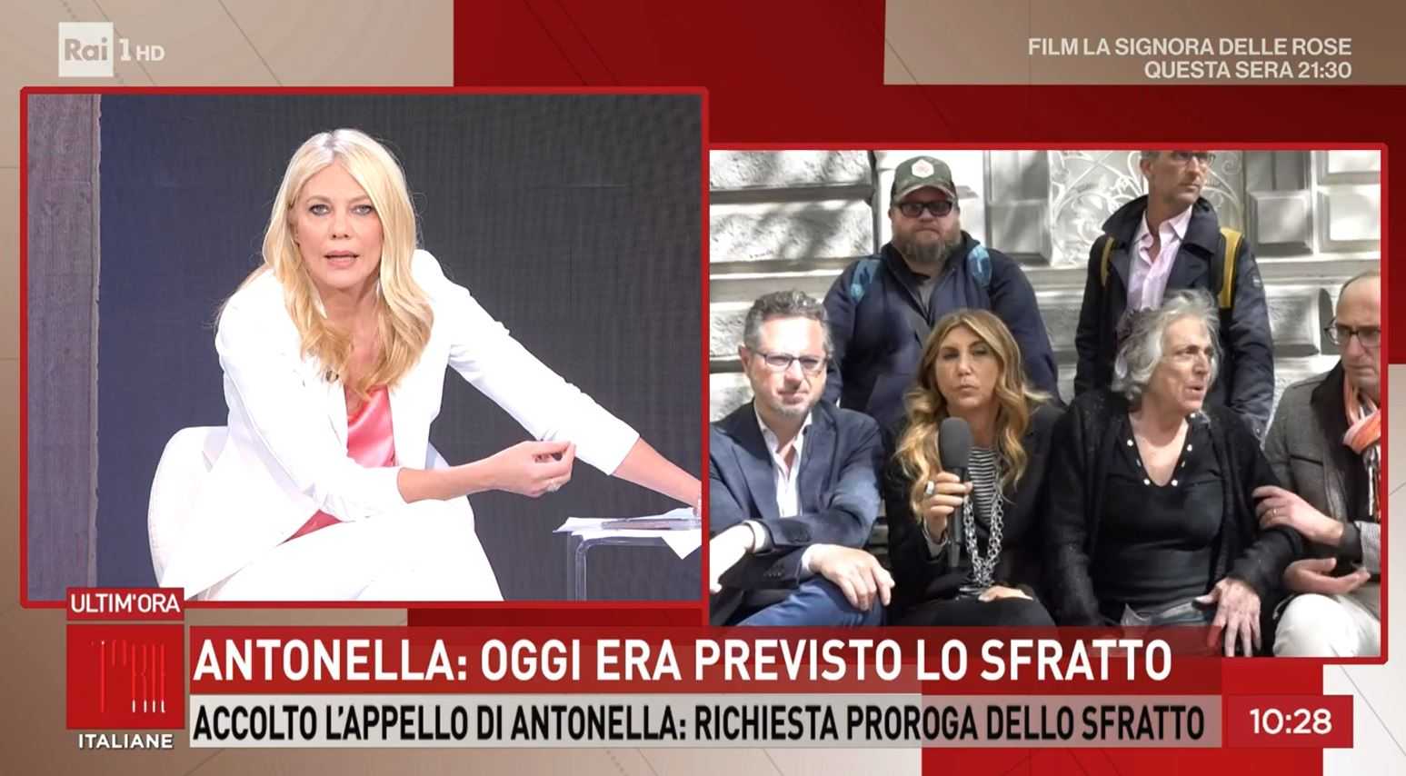 “Mi sto preoccupando perchè questa signora vedo che sta male, è molto malata. Che succede?”. Così Eleonora Daniele ha interrotto un servizio introducendo la vicenda di Antonella, una signora di 71 anni molto malata (ha anche un tumore) che ha ricevuto lo sfratto. Fortunatamente all’ultimo è arrivato il blocco dello sgombero, è arrivato l’ufficiale giudiziario che ha annunciato che lo sgombero sarebbe stato rimandato fino a luglio. “Potete immaginare come sta Antonella, aveva l’incubo di dover lasciare la casa”.