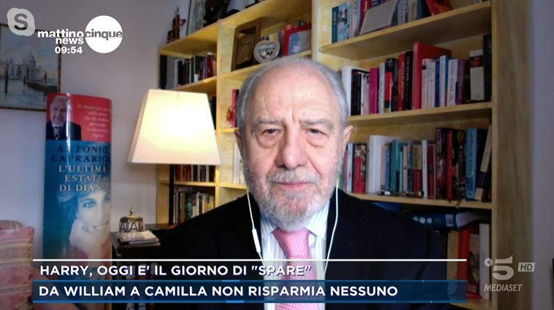 Antonio Caprarica commenta in diretta a Mattino Cinque, Spare, il libro biografico del principe Harry che sta facendo tremare la Corona