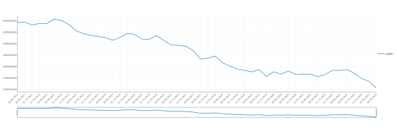 Ecco, questo è l’andamento dei prestiti in Italia negli ultimi 13 anni, cioè dal 2011 incluso, fino al terzo trimestre 2023.