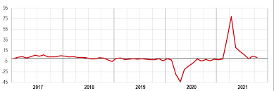 Dopo un calo del 45% dovuto ai lockdown, è risalita del 75% l’anno dopo, quindi tutto bene no? No, perché i valori percentuali evidenziati in questo modo ingannano, come si vede dal seguente grafico che riporta i valori assoluti, presi su un periodo più ampio.