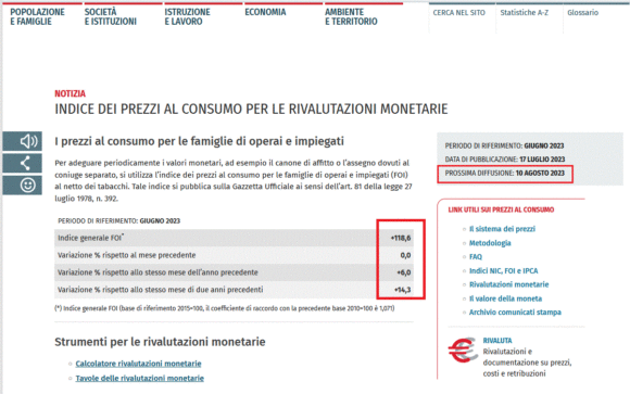 Questa importante indicazione viene aggiornata mensilmente e, conseguentemente, risulta assai utile per tutti coloro che detengono i cosiddetti titoli di Stato “Btp Italia”. Infatti, come previsto dalle rispettive schede informative a corollario dei singoli collocamenti si può facilmente riscontrare questo: «Cedola: modalità di calcolo e pagamento: semestrale, indicizzata all’indice FOI senza tabacchi del semestre di competenza, corrisposta in via posticipata, e calcolata moltiplicando il tasso cedolare semestrale reale fisso (Tasso cedolare reale annuo definitivo/2) per il capitale rivalutato».