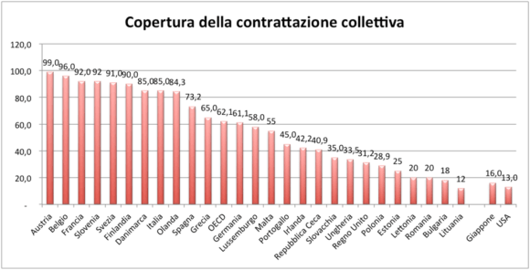 Poi anche per quanto riguarda la copertura contrattuale, l’Italia con l’85% dei lavoratori se la passa un po’ meglio della Spagna (al 73,2%). Da notare che il Governo Sanchez ha cambiato anche la gerarchia dei livelli contrattuali riconsegnando il primato alla contrattazione di settore, mentre in precedenza il modello spagnolo si caratterizzava per la contrattazione decentrata e di prossimità. Vedremo gli effetti sulle retribuzioni.