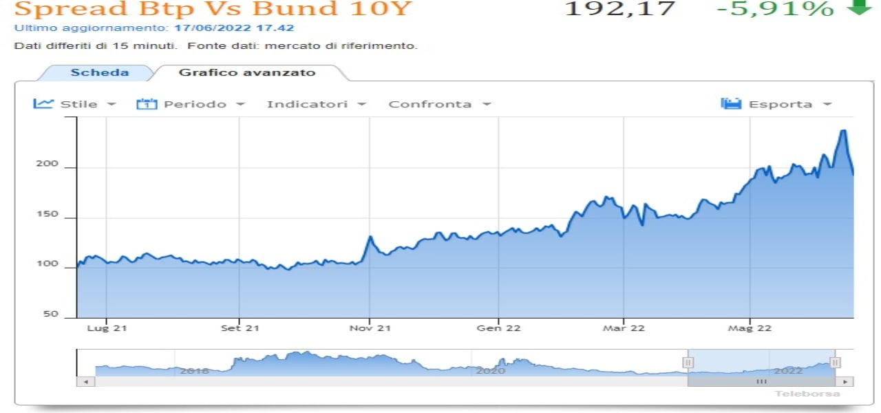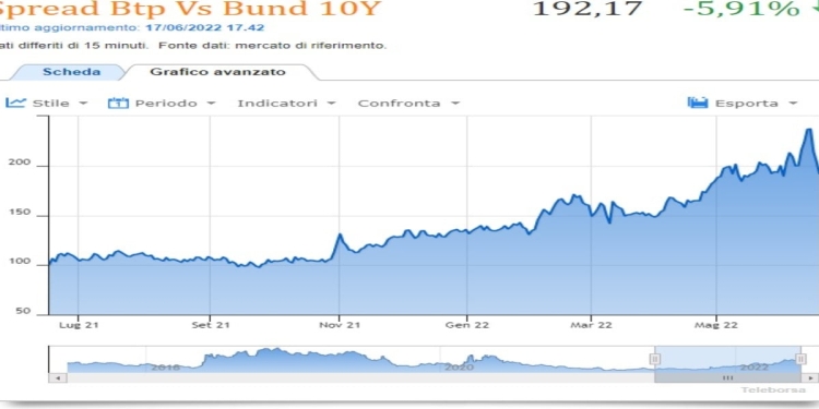 Lo spread btp-bund nella giornata di oggi registra il secondo è importante calo rispetto al periodo più caldo dell’anno. Il differenziale tra i BTP italiani è il Bund tedesco infatti diminuito del 5,91% arrivando a 192,17 punti base.