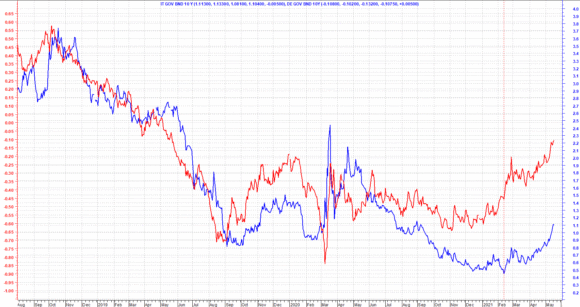 È pur vero che, osservando casa nostra e la sua recente dinamica sulla curva dei rendimenti. il livello di questi ultimi ha registrato un significativo incremento: dallo 0,448% (minimi di febbraio) si è giunti ai valori attuali.