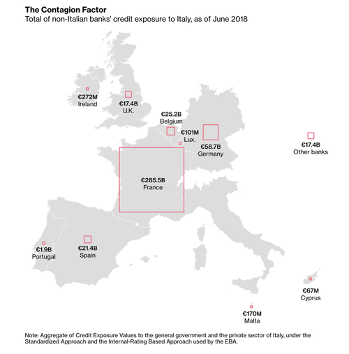 Siate certi di una cosa: sarà la crisi in arrivo, più o meno tamponata dalla Banche centrali, a mandare al tappeto quel nano del nostro sistema bancario e, con esso, le sue detenzioni monstre di Btp. Non il Mes, il quale serve soltanto a rendere statutario l’ombrello di garanzia generale a livello europeo, questo sì per tutelare gli istituti francesi da eventuali guai sui loro azzardi negli investimenti più spinti. Direte voi, perché dobbiamo salvare le banche francesi con i nostri soldi? Ce lo spiega questo ultimo grafico: perché dopo il nostro sistema creditizio e la Bce, sono le maggiori detentrici di debito pubblico del nostro Bel Paese. Ci ha fatto comodo lo scambio fra cessione dei rami più fruttuosi del sistema bancario interno a competitor francesi e acquisto da parte di questi ultimi di Btp con il badile? Bene, ora siamo ostaggi e dobbiamo prendercela solo con noi stessi, altro che sovranità violata e Mes come atto terminale dello strangolamento italico da parte dell’Ue.