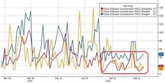 Però, com’è possibile spiegare questo grafico, relativo alle emissioni inquinanti nei quattro hub principali del Paese: forse Pechino, mentre cercava un vaccino per il coronavirus, si è imbattuta in un metodo infallibile per fare funzionare le fabbriche senza inquinare? Greta Thunberg ne sarà deliziata. Insomma, la Cina sarebbe tornata alla normale operatività industriale da colosso con il 6% di crescita all’anno senza emissioni e praticamente senza utilizzo di energie inquinanti? Questa sì che è una scoperta, una notizia che dovrebbe aprire i tg. Magari è per questo che i mercati festeggiano. Eppure, nessuno ne parla. Grazie a Dio, perché trattasi di clamorosa bufala. Anzi, clamorosa fake news. Contro la quale, però, nessuno ha da obiettare alcunché, arrivando da fonte ufficiale di un Paese che è meglio tenersi amico.