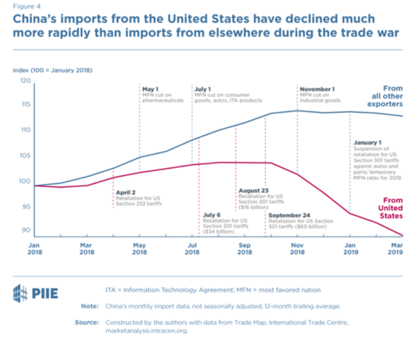 Non a caso, quali sono stati gli unici due argomenti che hanno avuto risvolti pratici a Osaka? L’alleggerimento del bando riguardo gli acquisti di tecnologia Usa da parte di Huawei e l’export agricolo statunitense in Cina. Ovvero, le uniche due voci che stanno facendo davvero male a entrambe le parti. E se questo grafico ci mostra plasticamente come il -53% su base annua di export agricolo Usa verso Pechino (con il comparto strategico della soia addirittura a -70%) rischia davvero di far rivoltare elettoralmente il Mid-West rurale contro Trump, dall’altra parte l’aver ceduto su Huawei dimostra una paura e una debolezza americana preoccupanti e ancor più profonde. Non fosse altro per il fatto che, proprio alla vigilia del G-20, la stampa statunitense avesse rilanciato con ampio risalto un’inchiesta di Bloomberg che svelava l’alto livello di collaborazione diretta fra il gigante della telefonia e le Forze Armate cinesi.