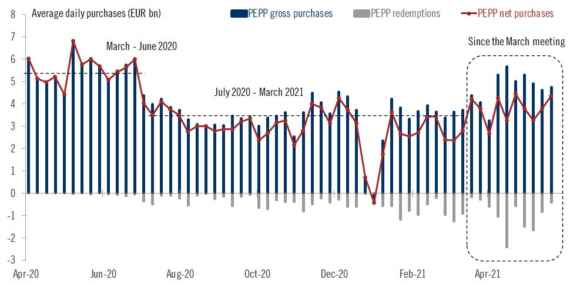 Il senso di quanto sta accadendo in questi giorni di apparente ottimismo da riaperture è facilmente riassumibile con un’immagine. E lo stesso vale per il repentino passo del gambero innescato dallo spread italiano nelle ultime sedute di contrattazioni. L’immagine è questa: la Bce ha davvero accelerato il ritmo degli acquisti in questo secondo trimestre. E pare che lo stia facendo in base a uno scadenzario ben preciso, a sua volta foriero di un sviluppo da prendere decisamente in considerazione in vista dell’autunno.