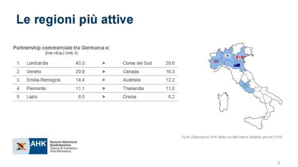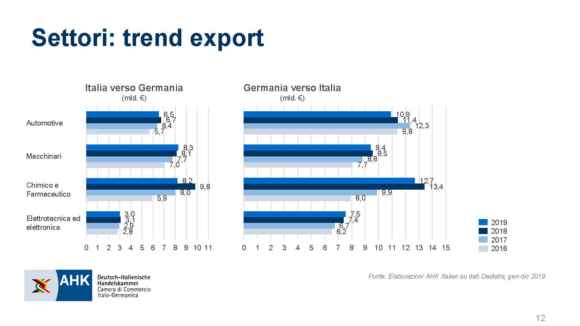 Tra i partner della Germania, l’Italia mantiene invece la quinta posizione raggiunta nel 2018, ampliando il divario rispetto al Regno Unito, il quale rispetto all’anno precedente perde un’altra posizione a favore della Polonia (miracoli della Brexit, a proposito di sovranismi). “Dopo quattro anni consecutivi segnati ciascuno da un nuovo record della nostra partnership economica, registriamo ora un 2019 nel segno della stabilità. La tenuta dell’interscambio commerciale tra i nostri Paesi anche a fronte del rallentamento della locomotiva tedesca e dell’economia globale nel suo complesso è la riprova di un rapporto di collaborazione solido e radicato”, ha commentato Jörg Buck, Consigliere delegato della AHK Italien.