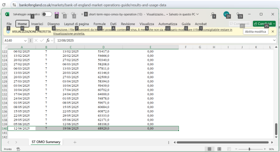E infine guardate questa tabella, la quale ci mostra gli allotments delle aste settimanali Short Term Repo della Bank of England. L’ultima ha segnato praticamente 70 miliardi di sterline.