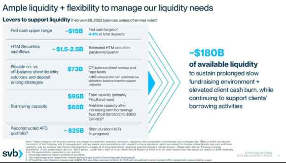 Altra riprova della bontà dell’operazione sapientemente costruita a tavolino? Appena giunta la notizia della decisione presa dai regolatori californiani, il rendimento del Treasury a 2 anni è tornato sotto i tassi Fed Funds per la prima volta dallo scorso novembre. Ma c’è dell’altro. L’immagine che vedete è la prima pagina dalla brochure della Silicon Valley Bank contenente un aggiornamento di metà trimestre.