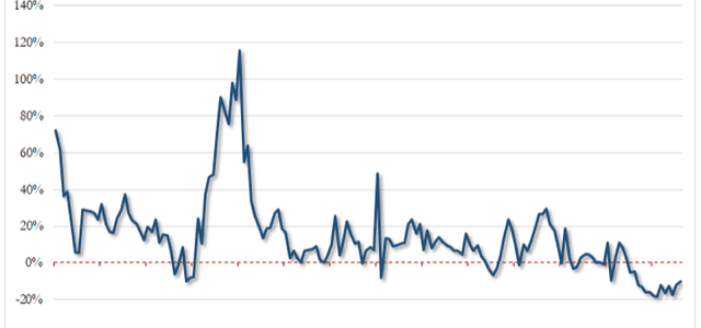 Ci mostra come per il 14° mese su 15 il mercato delle automobili in Cina abbia patito un calo, addirittura del 9,9% nel mese di agosto concluso da poco, ad appena 1,59 milioni di unità. E come vedete, nell’ultimissimo periodo, il trend è andato in risalita: non pensiate che il vento stia cambiando, è soltanto il frutto dell’ennesima campagna di finanziamento e incentivazione green varata dal governo per tamponare l’emorragia. Non c’è più domanda, siamo alla saturazione. D’altronde, quante auto dovrebbe possedere una famiglia cinese media per soddisfare le mire di sovra-produzione dei mandarini di Pechino?