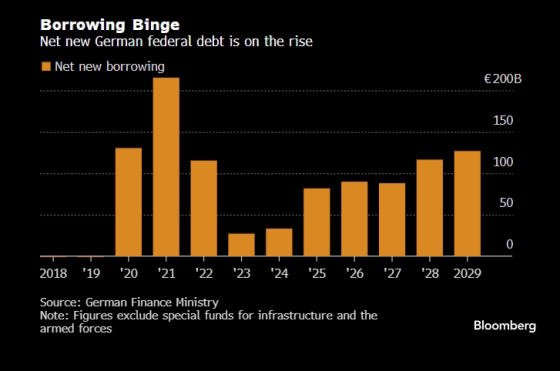 Ma attenzione a quanto mostra questo secondo grafico, il quale focalizza il trend di emissioni in cui si è imbarcata la un tempo austera Germania del debt-brake.
