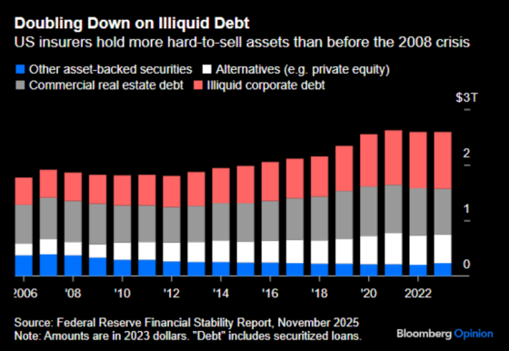 A oggi, le life insurers statunitensi siedono su assets illiquidi per 2,5 trilioni di dollari, il 37% del totale. Solo 10 anni fa eravamo al 31% e il livello attuale è superiore a quello pre-Lehman, oltre a ritrovarci con cuscinetti di capitale ai minimi da due decade. E con il dato ST borrowing aumentato dell’82% a 400 miliardi di dollari. Investing retirement savings in illiquids while running thinner margins, si fa sfuggire un veterano del desk. Ed ecco che ancora una volta la Bank of England stupisce. E più o meno involontariamente, mette le mani avanti rispetto a un regime di gestione finanziaria dei titoli di Stato che sta sfuggendo dal recinto del rischio lasciato aperto.