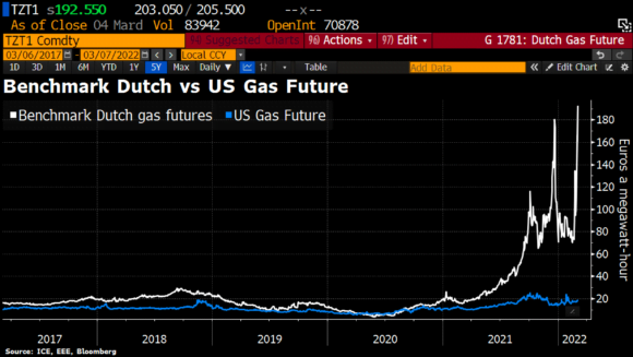 Entro venerdì, 500mila imprese italiane rischiano di chiudere. La loro colpa? Non aver rispettato le scadenze della rottamazione e ora il Fisco vuole il pagamento dei debiti entro 5 giorni. Altrimenti, partono le procedure esecutive. Sapete cosa significa? Significa game over. Perché abbiamo il petrolio ormai in area 140 dollari al barile, dopo anni e anni di regime delle valutazioni alla media di meno di un terzo. Abbiamo il gas a 310 euro per megawatt ora, praticamente ingestibile. Sudden death, morte immediata. E abbiamo, stupidi come siamo nel seguire gli Stati Uniti come cani da riporto, questa situazione: lo spread fra prezzo del gas naturale europeo e quello statunitense è 8 volte la media di arbitraggio degli ultimi 15 anni, livello record assoluto. Cosa dite, l’economia statunitense trarrà qualche piccolo vantaggio da questo dumping?