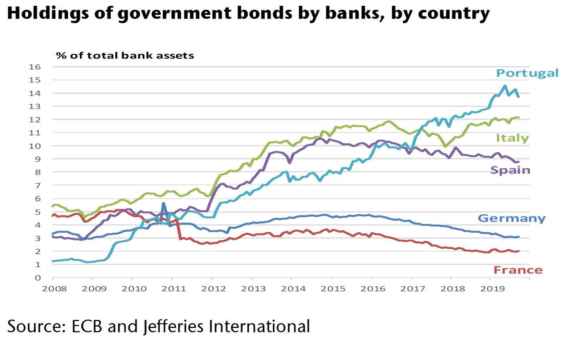 So tutto e, nei mesi, mi pare di averlo sottolineato abbondantemente. Così, tanto per allontanare aprioristicamente le accuse di essere visceralmente filo-tedesco. C’è però una questione che la vicenda Mes potrebbe portare a galla, con enorme beneficio per il nostro sistema Paese e capace finalmente di porre fine al capitalismo di relazione dei soliti noti (vedi i conti e i prestiti allegri presso Mps, tanto per fare l’esempio più eclatante e mediatico) e soprattutto a quello che fuori Italia viene definito doom loop. Ovvero, il rapporto incestuoso fra banche e politica basato sul do ut des un po’ ricattatorio proprio relativo alle detenzioni di debito pubblico in mano al sistema creditizio: una garanzia implicita su cui i Palazzi del potere fanno conto da sempre, ovviamente ricordandosi di operare con un occhio di riguardo verso le banche in sede legislativa. Nessuno, in piena coscienza, può negarlo. Atti parlamentari alla mano. E qualsiasi sia il colore di chi governa. Anche nelle sfumature, atteggiamento bipartisan totale.