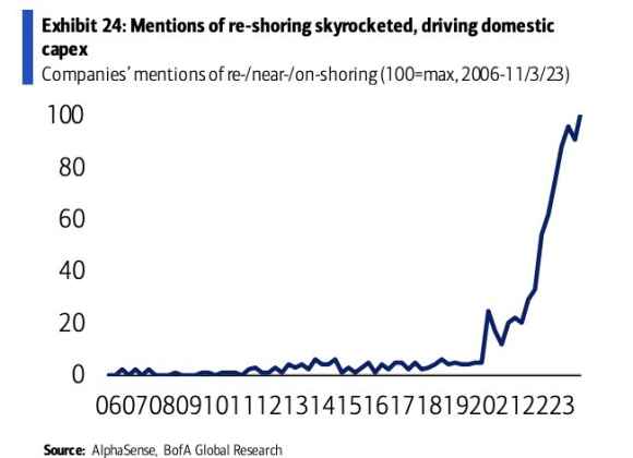Ora date un’occhiata a questi grafici. Il primo ci dice come il cosiddetto re-shoring, ovvero la ridefinizione delle supply chains in nome dell’accorciamento di distanze e tempi imposta proprio dalla pandemia, oggi sia l’unico driver delle spese per CapEx occidentale.